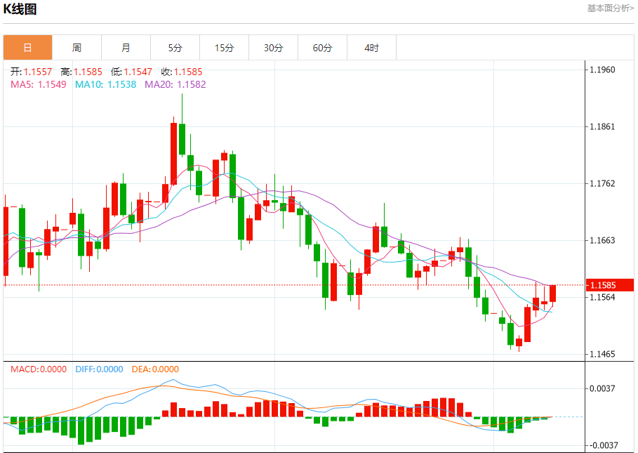 欧元/美元:截止北京时间21:20,欧元/美元上涨,现报1.1586,涨幅0.26%。纽市盘前,利用相对强弱指标中出现的积极信号,(欧元兑美元)价格在最后一个交易日上涨,表明价格运动的支撑势头有所改善,同时该对货币在此前有限下跌后继续试图加强其复苏。