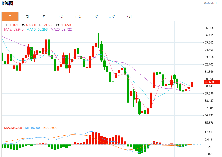 原油市场:截止北京时间21:20,美油上涨,现报60.650,涨幅0.88%。纽市盘前,(原油) 的价格在上一次盘中交易中上涨,受到相对强弱指标出现积极信号的支撑,试图一次性超越所有负面压力,正尝试突破其 EMA50 阻力位,并在短期内攻击主要的看跌趋势线,同时利用其在 59.85 美元以上的稳定性。
