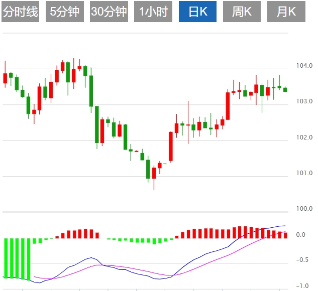 美元指数:截止发稿,美元指数走低,现报103.37,跌幅0.09%。美元指数周一飙升,报103.75,涨幅创下12月中旬以来的最高水平。这一飙升是在预计是多事之秋之前,美联储(Fed)将于周三公布2024年的首次决定,周五将公布美国的关键劳动力市场数据。技术上,日线图上的指标反映了买盘势头的复苏。相对强弱指数 (RSI) 正区域的正斜率表明多头正在获得更大的力量。这种反弹也可以在移动平均收敛散度 (MACD) 的上升绿色条中观察到,暗示了更大的看涨影响。