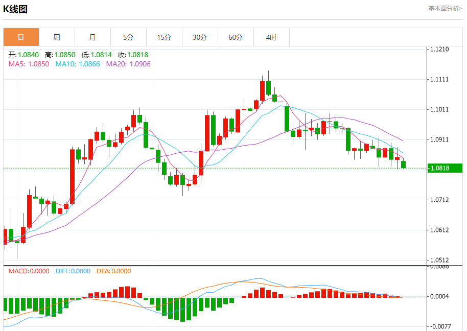 欧元/美元:截止北京时间21:17,欧元/美元下跌,现报1.0820,跌幅0.31%。纽市盘前,欧元兑美元汇率恢复负面交易,接近1.0800关口,强化了对未来几个交易日继续看跌趋势的预期,目标是1.0765作为第一站,并指出突破1.0765将推动价格达到1.0765的额外负面目标。