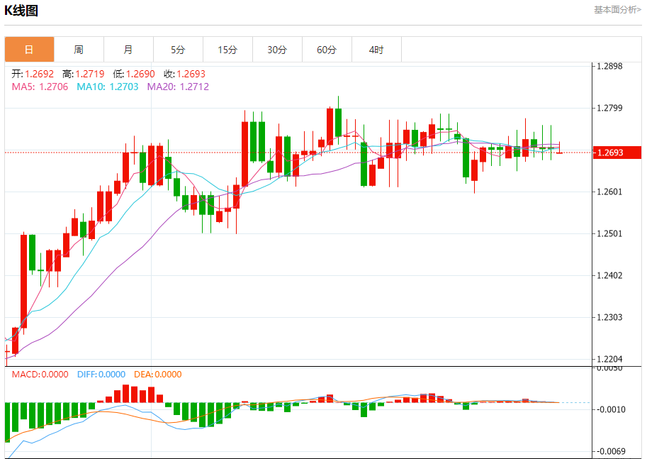 英镑/美元:截止北京时间21:17,英镑/美元下跌,现报1.2695,跌幅0.07%。纽市盘前,自上午以来,GBPUSD对没有表现出任何强劲的走势,因为它一直在EMA50附近波动,注意到随机指标接近超卖区,等待推动价格恢复今天的预期看涨趋势,其下一个目标位于1.2825,而实现这一目标需要保持在1.2645以上。