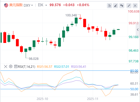 美元指数:截至发稿,美元徘徊在99.57附近。风险厌恶情绪使美元受到支撑,因美国政府重启释放大量数据,周四将发布非农就业报告。美国劳工统计局(BLS)将发布这些数据,以及周五的实际收入数据。与此同时,投资者因对可能的人工智能泡沫感到担忧而买入美元,英伟达将在周三发布财报,这可能会影响市场情绪,尤其是在美国关键数据发布之前。技术面上,如果美元指数能在50日均线99.55上方收稳,将朝100.00至100.15阻力位移动。
