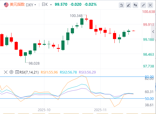 美元指数:截至发稿,美元徘徊在99.57附近。尽管日本央行行长植田和男暗示可能最早下个月加息,但首相高市早苗对此表示不满,要求央行配合政府重振经济,这一政策分歧引发市场对日本财政纪律的担忧。巴克莱银行分析认为,高市首相推行安倍经济学式政策将继续对日元构成压力。市场焦点转向预计周四公布的美国9月就业报告,这将为美联储下一步行动提供重要线索。技术面上,如果美元指数保持在50日均线99.48以上,将朝最近的阻力位移动,该阻力位位于100.00至100.15区间。