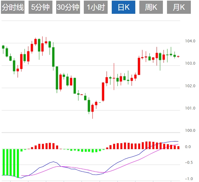 美元指数:截止发稿,美元指数小幅波动,现报103.42,涨幅0.01%。美元(USD)指数周二交投于103.40附近,低端数据发布后小幅下跌。为期两天的美联储(Fed)会议于周二开始,周三以美联储主席杰罗姆·鲍威尔(Jerome Powell)的新闻发布会结束。这使得市场变得谨慎,为美元提供了一些支撑。日线图上,相对强弱指数(RSI)在正区域内呈现出轻微的正斜率,表明买盘势头稳定。这与移动平均收敛散度 (MACD) 所代表的绿色条相结合,进一步增强了看涨情绪,并暗示了潜在的价格上涨轨迹。