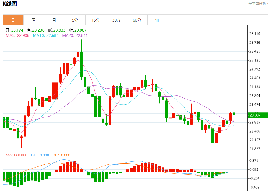 现货白银:截止北京时间21:20,现货白银下跌,现报23.089,跌幅0.38%。纽市盘前,白银价格在反转头肩顶形态的突破颈线附近波动,受随机利空的影响,显示出一些看跌倾向,等待聚集积极势头,推动价格恢复预期的今天看涨波,其下一个目标位于23.70。
