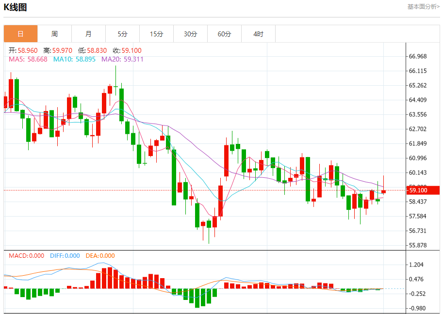 原油市场:截止北京时间21:20,美油上涨,现报59.100,涨幅0.94%。纽市盘前,(原油)价格在最近的盘中交易中下跌,收集了之前上涨的收益,试图获得可能有助于其再次上涨的看涨势头,并试图在相对强度指标上卸载一些超买条件,特别是随着负面信号的出现,其在EMA50上方的交易所代表的动态支持继续存在,受到短期积极形成(双底模式)的影响。