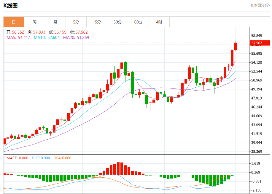 现货白银:截止北京时间21:20,现货白银上涨,现报57.566,涨幅2.10%。纽市盘前,(白银)价格在最后一个盘中交易中恢复上涨,接近历史新高,特别是在卸载了相对强度指标上的一些超买条件后,为实现更大的涨幅开辟了道路,在短期基础上的主要看涨趋势占主导地位,以及支持该轨道稳定性的主要和次要趋势线。