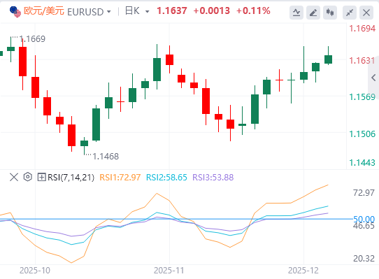 欧元兑美元在本周涨势基础上上涨,欧洲早晨上涨至1.1650。在本交易日晚些时候,欧盟统计局将公布10月份生产者物价指数(PPI)数据。此外,欧洲央行行长克里斯蒂娜·拉加德将在比利时布鲁塞尔欧洲议会经济与货币事务委员会(ECON)的听证会上发表讲话。
