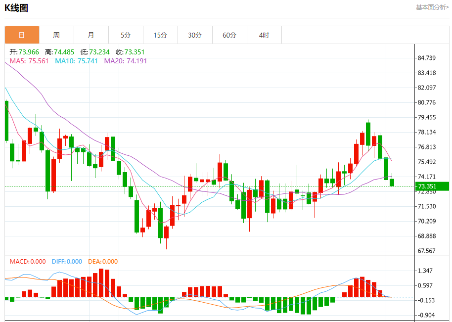 原油市场:截止北京时间21:18,美油下跌,现报73.331,跌幅0.80%。纽市盘前,原油价格正在测试73.73支撑线,到目前为止发现很难突破该支撑线,等待获得有助于推动价格突破该水平的负面动机,并确认主要向72.45和71.75水平延伸熊市。
