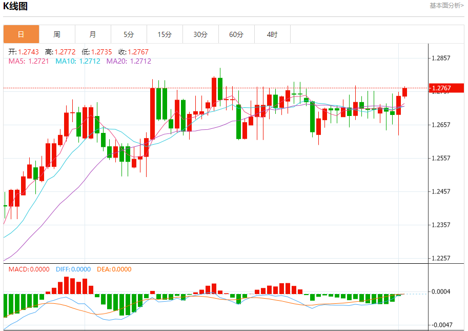 英镑/美元:截止北京时间21:18,英镑/美元上涨,现报1.2769,涨幅0.20%。纽市盘前,GBPUSD对设法突破1.2755水平并试图保持在该水平之上,这支持了今天预期的看涨趋势的延续,目标是1.2825作为下一个主站。