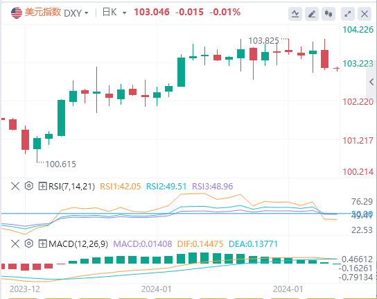 周四,美元指数在英镑走高的压力逆转涨势,回落至103关口附近,今日亚盘澳元/美元和纽元/美元在周四的反弹之后继续走高,其他货币下跌,截至目前,美元报价103.046。