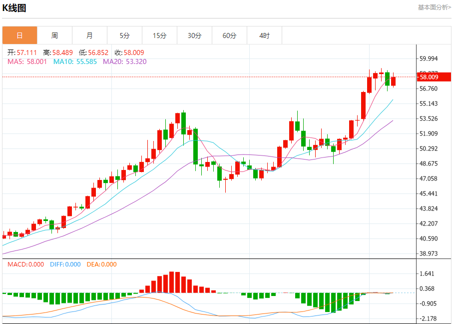 现货白银:截止北京时间21:20,现货白银上涨,现报57.996,涨幅1.54%。纽市盘前,(白银)价格在最后一个盘中交易中以强劲的涨幅结算,准备达到58.80美元的关键阻力,同时在短期基础上出现小幅看涨趋势,这支持了这种情况,此外,尽管达到了超买水平,但由于其交易高于EMA50,除了相对强度指标的出现,还出现了持续的负面压力。
