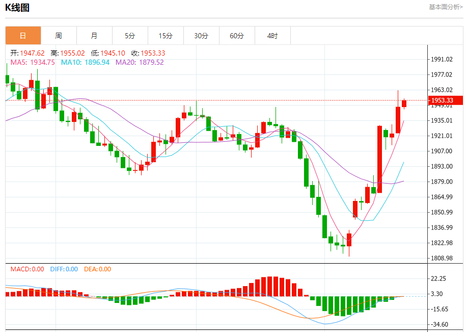 现货黄金:截止北京时间20:24,现货黄金上涨,现报1953.42,涨幅0.35%。纽市盘前,黄金价格在关键支撑1945.20波动,并在此上方保持稳定,直到现在,注意到随机指标明显获得积极的动力,等待推动价格恢复今天预期的看涨趋势,这取决于价格在上述支撑上方的稳定性,而其下一个目标位于1977.25。