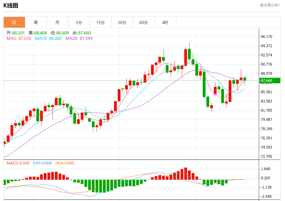 原油市场:截止北京时间20:24,美油下跌,现报87.661,跌幅0.57%。纽市盘前,原油价格自上午以来表现疲软,停留在88.50水平附近,因此,今天的预期看涨趋势没有改变,这取决于价格稳定在87.95水平以上,提醒您我们的目标是从突破89.10开始,为走向90.50开辟道路。