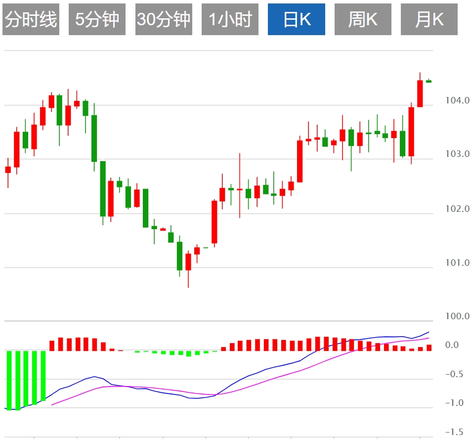 美元指数:截止发稿,美元指数走低,现报104.43。以美元指数衡量的美元(USD)周一升至104.50,为11月中旬以来的最高水平。这种上升归因于1月份ISM服务业采购经理人指数(PMI)的走强,由于市场放弃了3月份降息的希望,美元指数得到了有利的提振。日线图上的指标反映了短期内动能的潜在转变。相对强弱指数 (RSI) 接近超买状态,这通常表明买家可能正在失去控制,尽管它并没有立即表明趋势逆转。然而,评估更广泛的技术前景描绘了一幅略有不同的图景。该指数现在高于 20,100 和 200 天简单移动平均线 (SMA),表明多头强劲而持续地推动。这可以被解释为对更广泛前景的看涨信号。