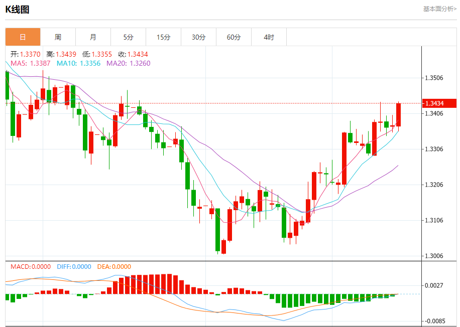 英镑/美元:截止北京时间21:20,英镑/美元上涨,现报1.3436,涨幅0.47%。纽市盘前,GBPUSD在最后一个交易日下跌,在达到超买水平后,相对强弱指标出现负面信号。该对货币继续寻找上涨低点,以此作为基础,可能有助于其获得复苏所需的看涨动力,其交易位于EM5A0上方所代表的动态支撑继续存在,在短期主要看涨趋势占主导地位及其沿趋势线交易的情况下,加强了近期复苏的机会。