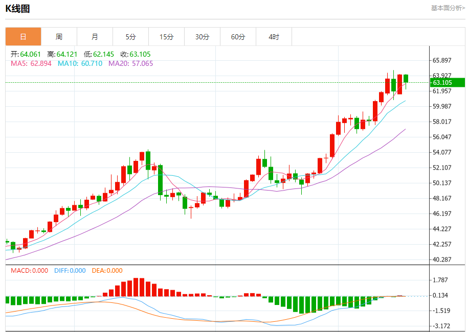 现货白银:截止北京时间21:20,现货白银下跌,现报63.120,跌幅1.47%。纽市盘前,在达到超买水平并获得可能有助于其恢复和再次上涨的看涨势头之后,白银价格在最后一个交易日的水平上波动交易,在相对实力指标上出现负面信号,在主要看涨趋势占主导地位以及沿着主要和次要趋势线交易的情况下,其在EMA50上方交易所代表的动态支撑继续存在,增强了价格在近期基础上恢复的机会。