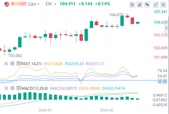 周四,因美国经济数据喜忧参半,美元指数在美盘时段大幅下挫,但仍维持在104关口上方。截至目前,美元报价104.4。
