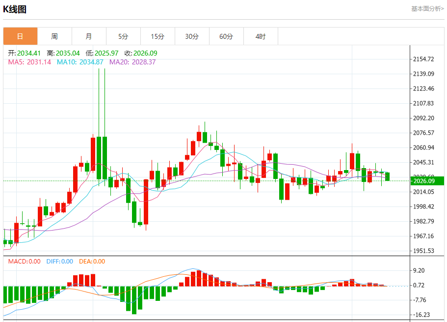 现货黄金:截止北京时间21:16,现货黄金下跌,现报2026.08,跌幅0.40%。纽市盘前,自上午以来,金价没有表现出任何强劲的走势,继续在EMA50附近波动,因此,今天的预期看涨趋势没有改变,其下一个主要目标位于2065.70,提醒您保持在2016.90上方以继续预期的上涨是重要的。
