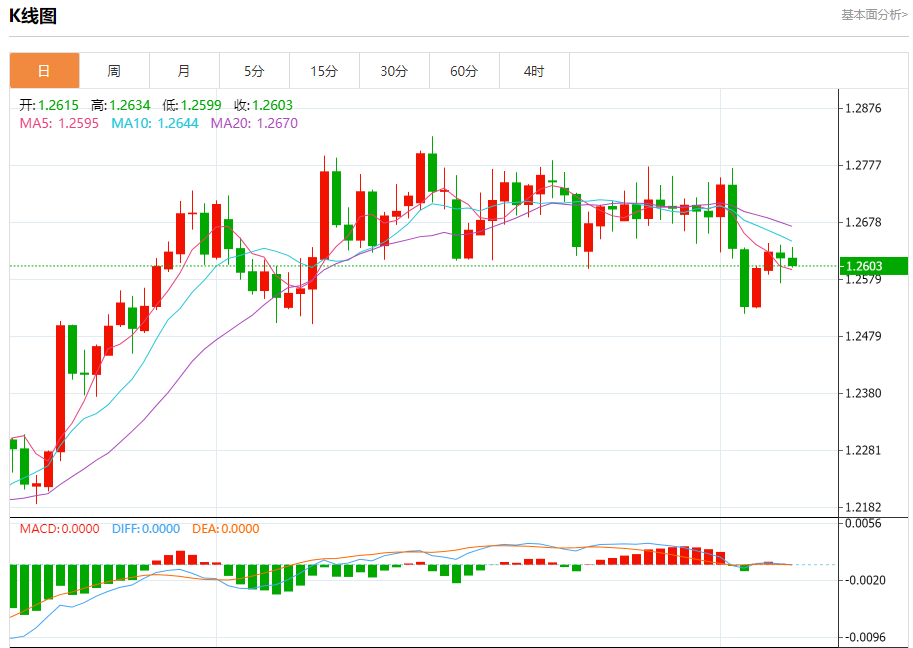 英镑/美元:截止北京时间21:16,英镑/美元下跌,现报1.2604,跌幅0.10%。纽市盘前,GBPUSD货币对保持在1.2610水平之上的稳定性,并显示出一些轻微的看涨倾向,等待更多的上涨突破1.2645并确认向我们的主要预期目标1.2765反弹。