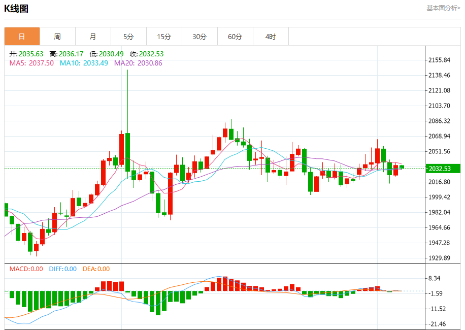 现货黄金:截止北京时间21:21,现货黄金下跌,现报2032.60,跌幅0.16%。纽市盘前,自上午以来,黄金价格交易一直处于窄幅区间,徘徊在EMA50附近,等待聚集积极势头,推动价格恢复牛市,目标是2065.70作为下一个主站。