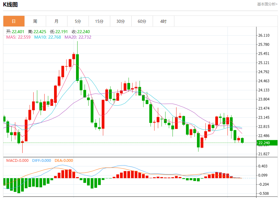 现货白银:截止北京时间21:21,现货白银下跌,现报22.242,跌幅0.71%。纽市盘前,白银价格继续尝试突破22.25水平,随机指标继续提供负面信号,支持实现所需突破的机会,随后为实现我们从21.70开始并延伸到21.35的负面目标开辟道路。