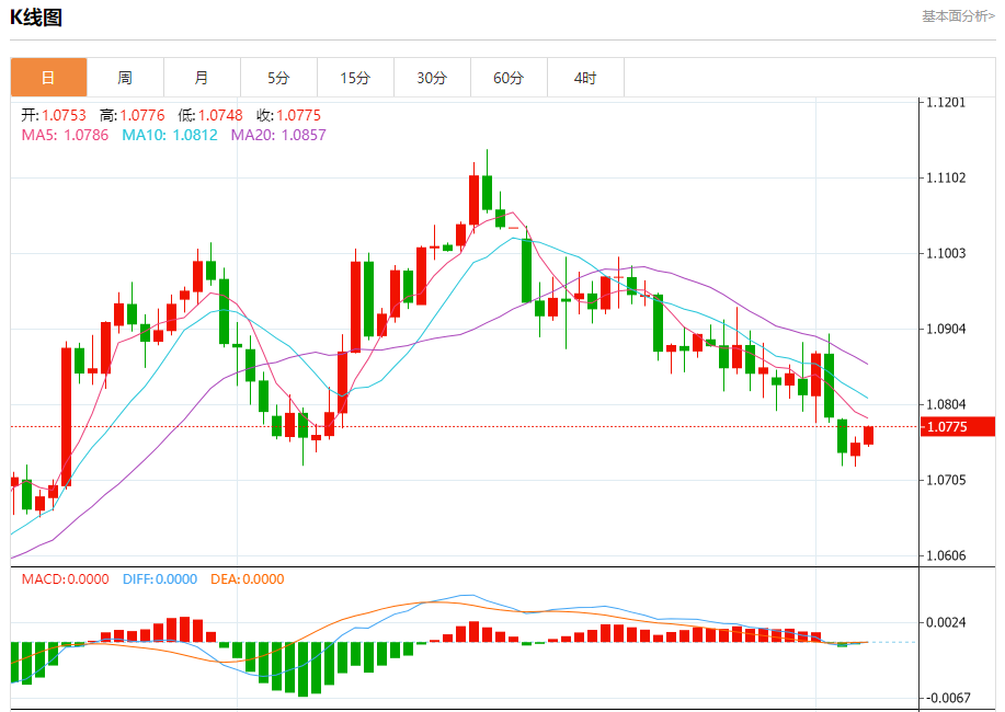 欧元/美元:截止北京时间21:21,欧元/美元上涨,现报1.0776,涨幅0.20%。纽市盘前,欧元兑美元汇率围绕1.0765水平波动,并继续尝试突破,以保持我们的看涨观点,即需要确认突破该水平才能反弹至1.0805,然后是1.0860水平,作为下一个正站,注意随机消极因素阻碍了使命的上升。