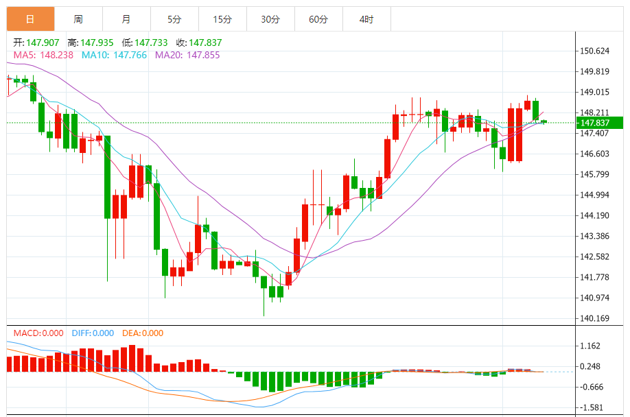 日元:美元/日元下跌,收报147.814,跌幅0.49%。技术面上,汇价上行的初步阻力位于148.545,进一步阻力位149.151,关键阻力位于149.517;汇价下行的初步支撑位于147.573,进一步支撑位于147.207,更关键支撑位于146.601。