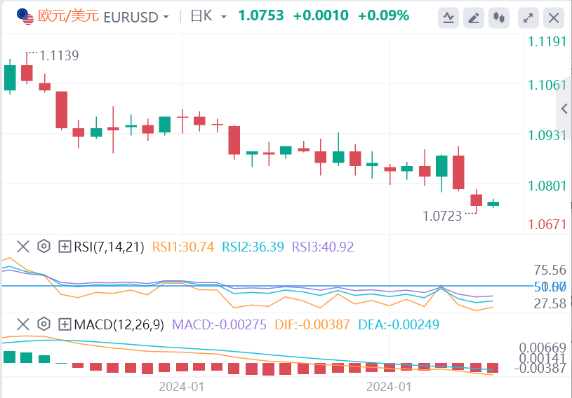 欧元/美元周一跌破1.0800,触及11周以来的最低水平1.0720附近。该货币对进行了技术性修正,周二早盘小幅走高至1.0750附近。