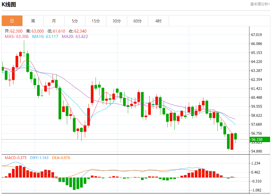 原油市场:截止北京时间21:20,美油上涨,现报56.140,涨幅0.61%。纽市盘前,(原油)价格在最后一次盘中交易中下滑,受关键阻力位56.40美元稳定的影响,同时相对强弱指标出现负面信号,在达到超买水平后呈现动态负面压力,其交易价格低于EMA50,加剧了负面压力,尤其是在短期内沿着小幅下跌趋势线交易的情况下。