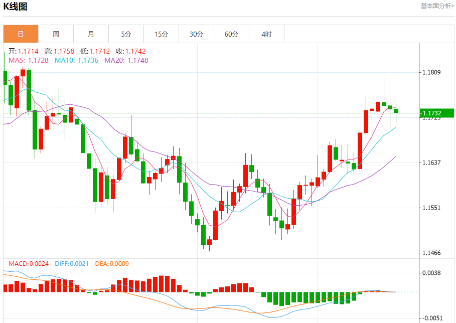 欧元/美元:截止北京时间21:20,欧元/美元下跌,现报1.1734,跌幅0.06%。纽市盘前,(欧元兑美元)的价格在最后一个交易日下跌,试图获得可能有助于其恢复和再次上涨的看涨势头,试图摆脱相对强度指标上的一些超买状况,特别是在EMA50上方交易所代表的动态支持的持续下,以及在短期基础上的看涨趋势及其沿趋势线交易的主导下。