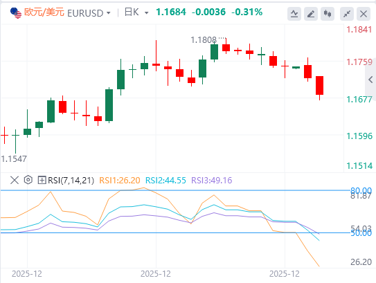 在美元整体强势压力下,欧元兑美元在欧洲早盘处于劣势,交易跌破1.1700。欧洲经济日历将公布一月份的Sentix投资者信心数据。
