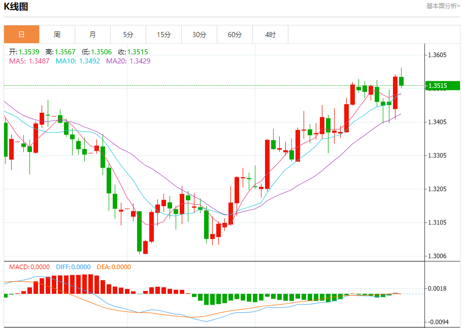 英镑/美元:截止北京时间21:20,英镑/美元下跌,现报1.3518,跌幅0.17%。纽市盘前,GBPUSD在最近一次盘中交易中经历了急剧和突然的上涨,突破了1.3525的关键阻力,利用了其在EMA50上方交易所代表的动态支持,在短期内主要看涨趋势占主导地位,其交易沿着支持该轨道的趋势线进行,另一方面,我们注意到在达到超买水平后,相对强度指标出现了负重叠信号,这可能会以相同的先前强劲势头减缓上涨。