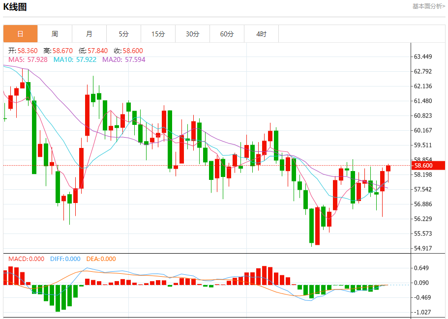 原油市场:截止北京时间21:20,美油上涨,现报58.590,涨幅0.48%。纽市盘前,(原油)价格在最后一个交易日飙升,原因是其依赖于EMA50的支撑,获得了有助于实现这些强劲收益的看涨动力,准备攻击58.70美元的关键阻力,上涨是由于相对强度指标出现了负面信号,表明价格周围的看涨动力的强度。