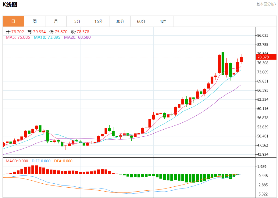 现货白银:截止北京时间21:20,现货白银上涨,现报78.453,涨幅2.47%。纽市盘前,由于关键阻力稳定在78.10美元,白银价格在最后一个交易日略有下跌,试图获得突破阻力所需的积极动力,其交易位于EMA50上方,在短期主要看涨趋势的主导下,其交易沿着支持该轨道的趋势线进行,伴随着相对强度指标的积极信号的出现,尽管其稳定在超买水平。
