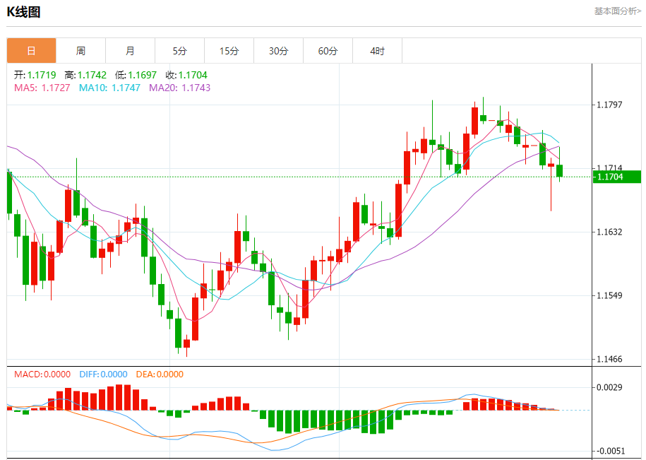 欧元/美元:截止北京时间21:20,欧元/美元下跌,现报1.1706,跌幅0.13%。纽市盘前,(EURUSD)在上一次盘中交易中价格下跌,相对强弱指标开始形成负背离,在达到超买水平后,与价格走势相比被夸大,同时出现了负重叠信号,在其价格低于EMA50且短期内受看跌修正波动主导下,负面压力持续。