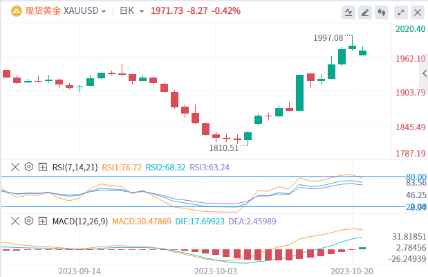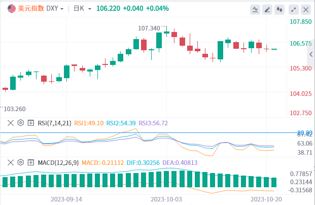美元指数:截止发稿,美元指数交投于106.22附近。美国9月份的经济活动好于预期。工业生产和零售销售均高于预期。周三,美联储的褐皮书报告将美国经济形势描述为“稳定”,自去年9月的报告以来,没有透露任何新的见解。下周,美国将从10月开始发布标准普尔制造业PMI,这可能会对美联储下一组预测的预期产生影响。此外,美国将从9月开始报告第三季度GDP(国内生产总值)和核心个人消费支出(PCE)的初步估计。技术面上,美元指数在日线图上处于中等看涨趋势,保持在关键的100和200天SMA上方。然而,在短期内,空头已经聚集了足够的动力,使他们在牛市中占据上风。在日线图上,RSI指向下方,尽管仍高于50的中点。MACD在10月5日出现看跌交叉,尽管在10月12日市场复苏时趋势下跌。考虑到主要的上升趋势,汇率仍有可能回升。