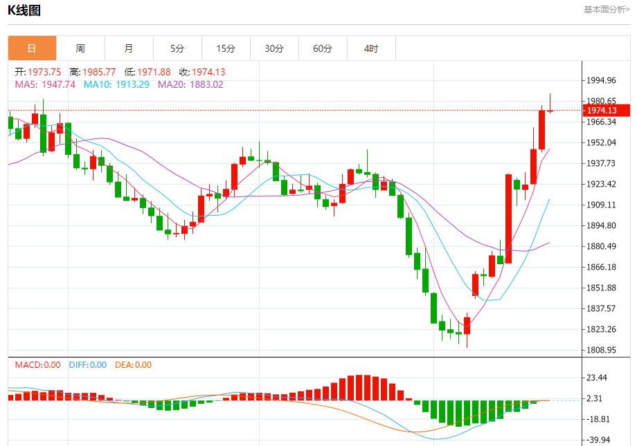现货黄金:截止北京时间20:24,现货黄金上涨,现报1974.83,涨幅0.03%。纽市盘前,黄金价格显示新的积极交易远离1977.25水平,加强了对今天剩余时间继续看涨趋势的预期,并且实现我们从2000.00开始并延伸到2016.90的新目标的道路是开放的。
