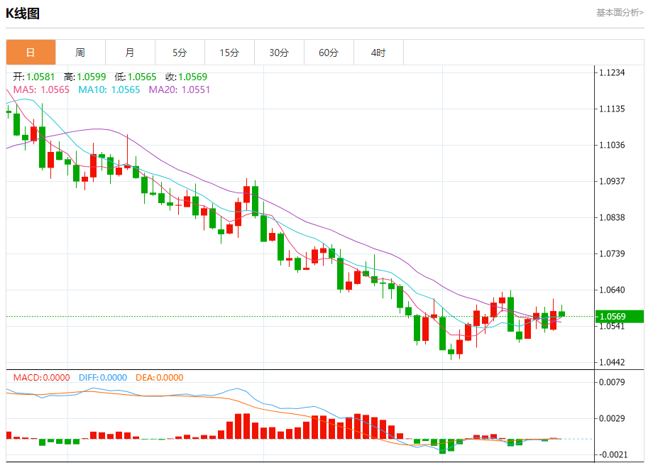 欧元/美元:截止北京时间20:24,欧元/美元下跌,现报1.0570,跌幅0.13%。纽市盘前,欧元对美元显示自上午以来的横盘交易,仍然卡在由1.0550支撑和1.0640阻力代表的趋势关键之间,正如我们今天上午提到的,价格需要超过其中一个水平才能清楚地发现其下一个目的地,这使我们继续保持中立直到现在。