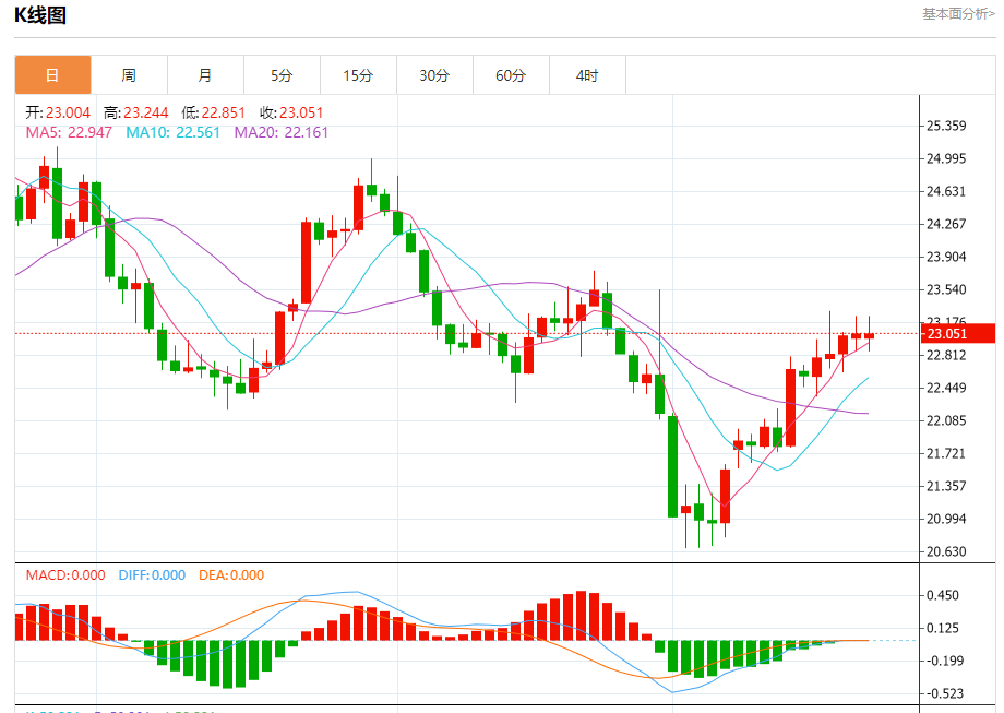 现货白银:截止北京时间20:24,现货白银上涨,现报23.052,涨幅0.11%。纽市盘前,银价恢复积极交易以远离23.00水平,这支持了即将到来的交易中积极情景的延续,提醒你我们的下一个目标位于23.70,由EMA50支撑,提醒你牛市的延续取决于23.00上方的价格稳定性。