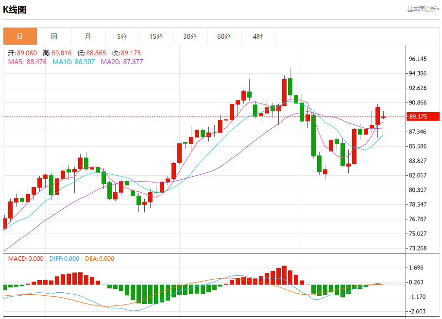 原油市场:截止北京时间20:24,美油下跌,现报89.200,跌幅1.23%。纽市盘前,原油价格自上午以来表现疲软,稳定在90.70附近,因此,今天的预期看涨趋势没有改变,这取决于价格稳定在88.70上方,而其下一个目标位于92.00,随后是95.35。