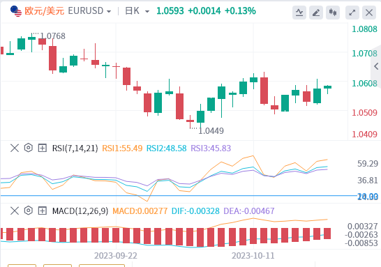欧元/美元周四攀升至1.0600以上的一周新高,但周五早些时候失去了上涨势头。截至记者发稿时,该货币对在1.0550以上的窄幅通道内上下波动。