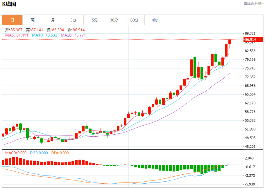 现货白银:截止北京时间21:20,现货白银上涨,现报86.900,涨幅2.09%。纽市盘前,(白银)价格在最后一个交易日小幅上涨,在卸载其超买条件后,相对强度指标出现了积极的重叠信号,为近期实现更多收益开辟了道路,其在EMA50上方交易所代表的动态压力仍在继续,在短期内沿着主要看涨趋势线交易,支持看涨情景。
