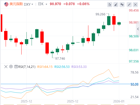 周一,特朗普政府对美联储主席鲍威尔展开刑事调查的不确定性加深,引发了市场对美联储独立性和美元长期前景的担忧。美元指数日内承压,截至目前,美元报价98.97。