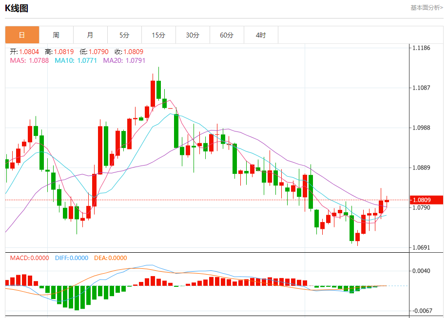 欧元/美元:截止北京时间21:24,欧元/美元上涨,现报1.0810,涨幅0.02%。纽市盘前,欧元对美元显示负面交易,可能测试关键支撑位1.0765,受随机负面因素影响,随机负面因素试图现在聚集积极势头,等待推动价格恢复今天的预期看涨趋势,其下一个目标位于1.0860。