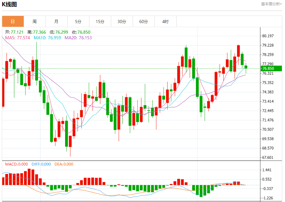 原油市场:截止北京时间21:24,美油下跌,现报76.829,跌幅0.48%。纽市盘前,原油价格面临突破77.00水平的新负面压力,并试图保持在该水平以下,以开辟实现额外熊市修正的道路,目标是75.95区域作为下一个负站。