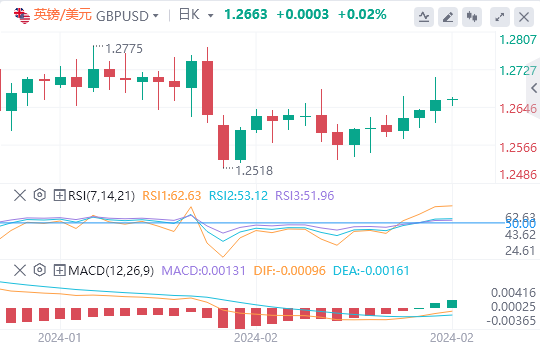 英镑:截止发稿,英镑/美元徘徊于1.2663附近。英镑/美元周四上涨,收报1.2660,涨幅0.18%。英国2月制造业采购经理人指数初值为47.1,高于47.0,低于市场预期的47.5。望未来,投资者将从美联储克里斯托弗·沃勒周五的讲话中获得更多线索。下周,美国第四季度国内生产总值(GDP)将公布。技术面上,汇价上行的初步阻力位于1.2710,进一步阻力位于1.2759,关键阻力位于1.2808;汇价下行的初步支撑位于1.2612,进一步支撑位于1.2563,更关键支撑位于1.2514。