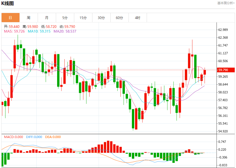原油市场:截止北京时间21:20,美油上涨,现报59.810,涨幅0.81%。纽市盘前,(原油)价格在最后一个交易日上涨,原因是其依赖于EMA50的支撑,获得了看涨势头,这有助于其将早期的损失转化为盘中的收益,其中短期看涨趋势占主导地位,其交易伴随着较小的趋势线,此外,相对强度指标出现了积极的信号,强化了近期的看涨情景。