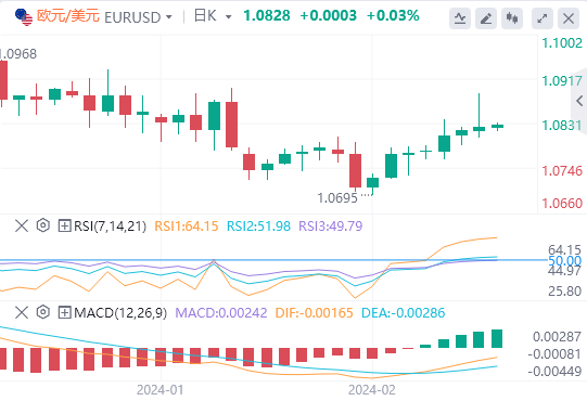 2月23日,周五欧市盘中,美元指数基本持稳,目前位于103.95附近。