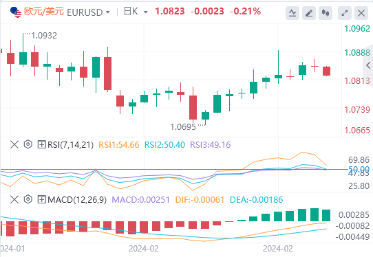 欧元/美元在周二收于负值后,周三继续向1.0800逼近。欧盟委员会将公布2月份经济景气指数、工业信心指数、消费者信心指数、服务业信心指数和商业环境数据。
